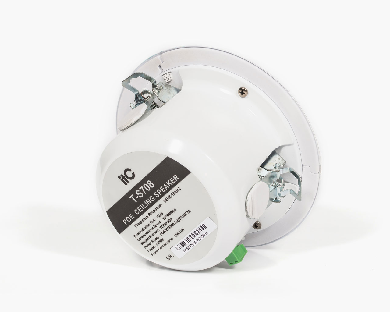 ITC T-S708 - професійній стельовий гучномовець із вбудованим цифровим підсилювачем потужності, фіксованим опором та високоякісними динаміками.