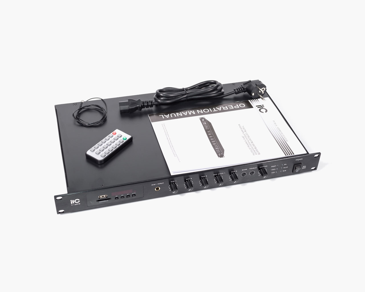 Мікшуючий підсилювач з MP3/TUNER/Bluetooth для відтворення фонової музики в невеликих і середніх приміщеннях, таких як невеликі і середні супермаркети, торговельні та розважальні центри, ресторани і кафе.