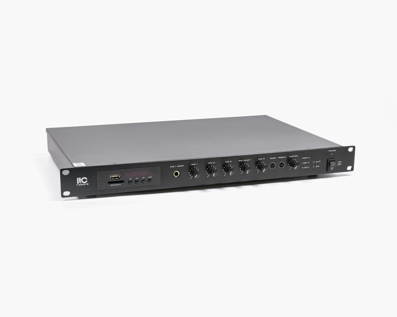Цифровий мікшуючий підсилювач з MP3/TUNER/Bluetooth для відтворення фонової музики в невеликих і середніх приміщеннях, таких як невеликі і середні супермаркети, торговельні та розважальні центри, ресторани і кафе.