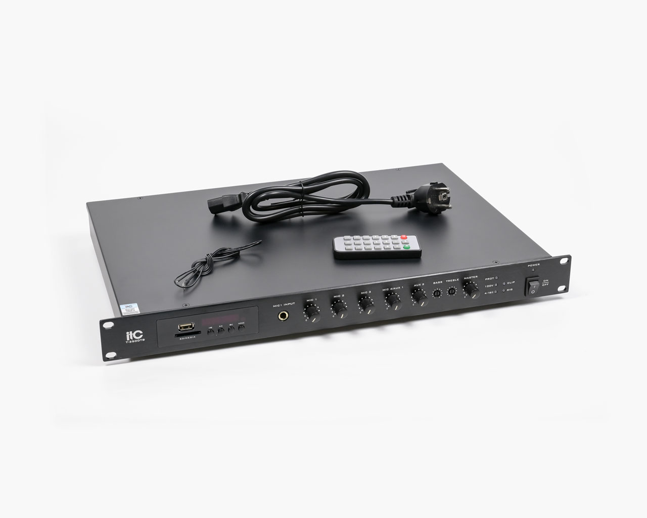 Цифровий мікшуючий підсилювач з MP3/TUNER/Bluetooth для відтворення фонової музики в невеликих і середніх приміщеннях, таких як невеликі і середні супермаркети, торговельні та розважальні центри, ресторани і кафе.