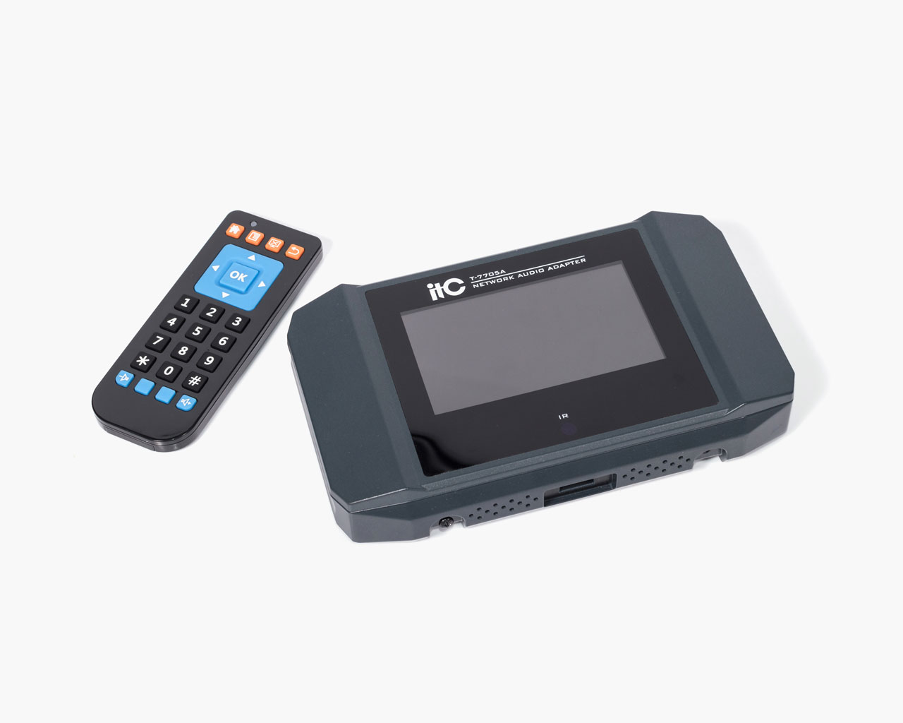 Адаптер ITC T-7705A підходить для шкіл, офісних будівель, конференц-центрів, центрів сигналізації, залізничних вокзалів та кімнат для відпочинку. Обладнаний функціоналом програвання фонової музики, дзвінка за розкладом.