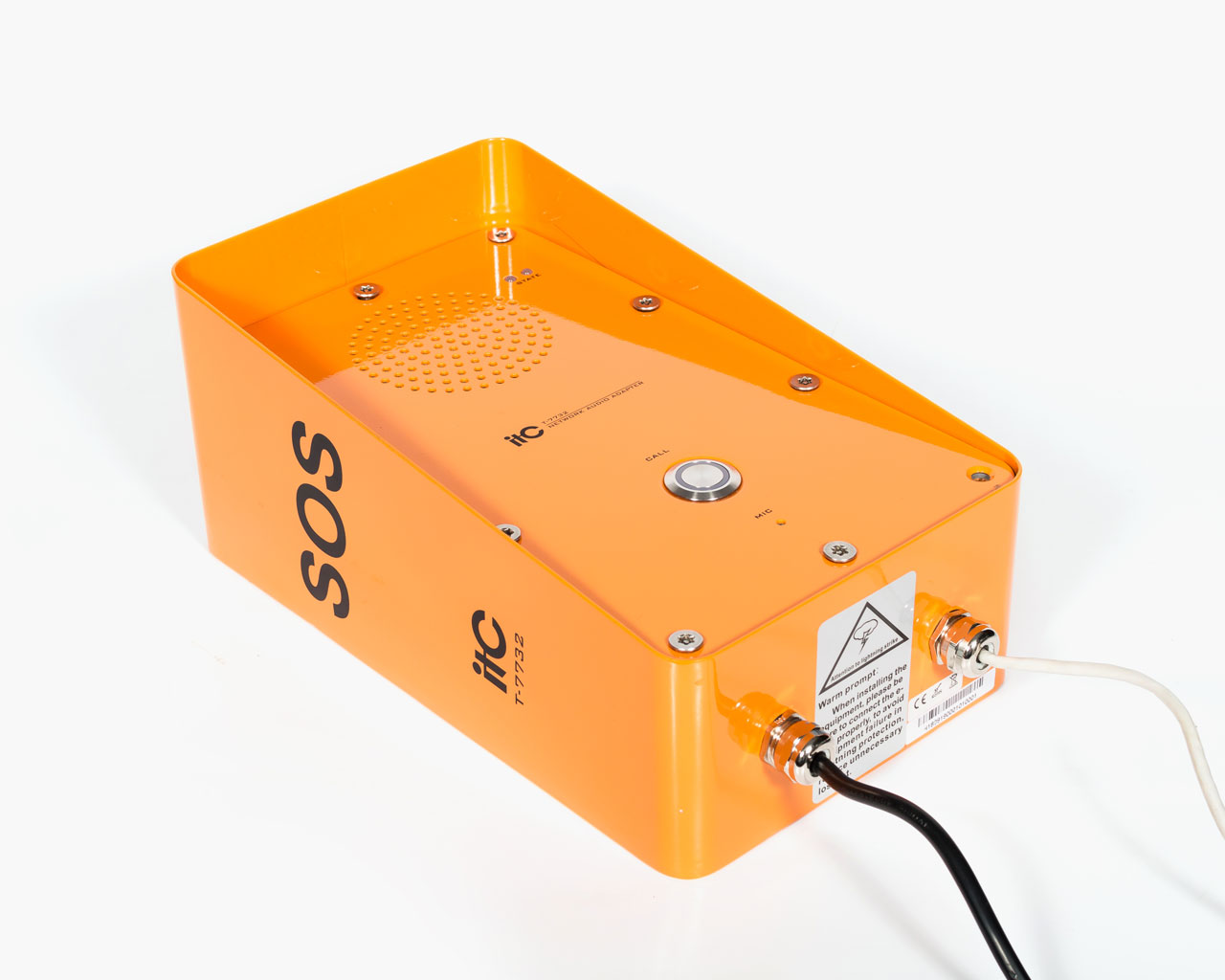 ITC T-7732 - зовнішня односекційна тривожна вологозахисна інтерком панель, яка призначена для встановлення у таких місцях як тунель, шахта, великий парк, "безпечне місто", тощо. Ця панель має міцний та захищений металевий корпус, може бути встановлена у будь-яких погодних умовах.