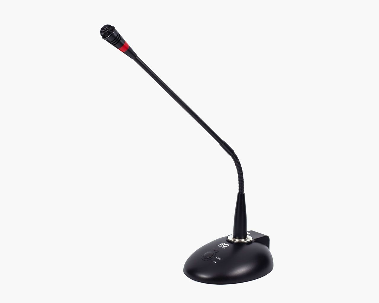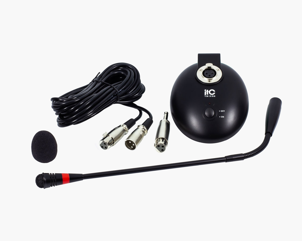 Настільний мікрофон ITC TS-338 призначений для подачі мовних оголошень. Включення / відключення мікрофона здійснюється кнопкою, розташованої на передній частині корпусу підставки. При включенні мікрофона спалахує індикатор, розміщений над кнопкою включення.