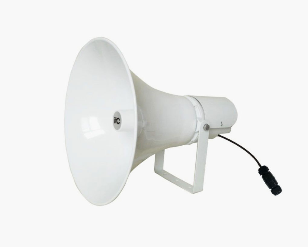 ITC Audio T-S7720 - рупорний всепогодний гучномовець. Високоякісний динамік з відмінною якістю звуку. Це - ідеальний вибір для озвучування зовнішньої області вокзалу, аеропорту, торгових центрів, стоянок, фабрик і д.р. Корпус з АБС пластика і металева дужка мають білий колір. Має захист від води і сильних струменів з будь-якого напрямку. Працює в режимах 100В і 70В.