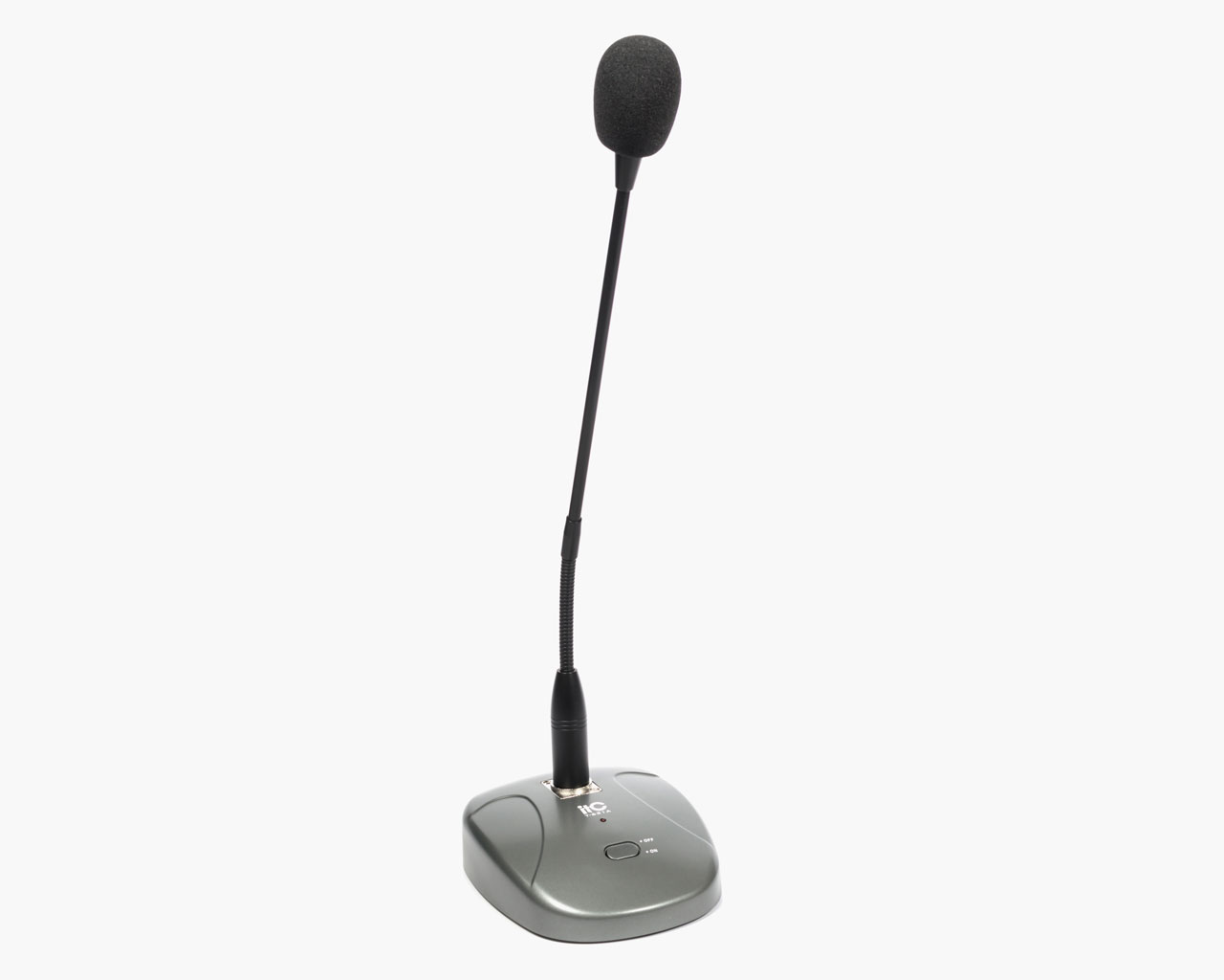 Настільний мікрофон ITC T-621A призначений для подачі мовних оголошень. Включення/відключення мікрофона здійснюється кнопкою, розміщеною на передній частині корпусу підставки. При включенні мікрофона спалахує індикатор, розміщений над кнопкою включення. Включення мікрофона супроводжується гонгом (сигналом привернення уваги). На дні підставки розміщується вмикач/вимикач, а також регулятор рівня гучності гонга.