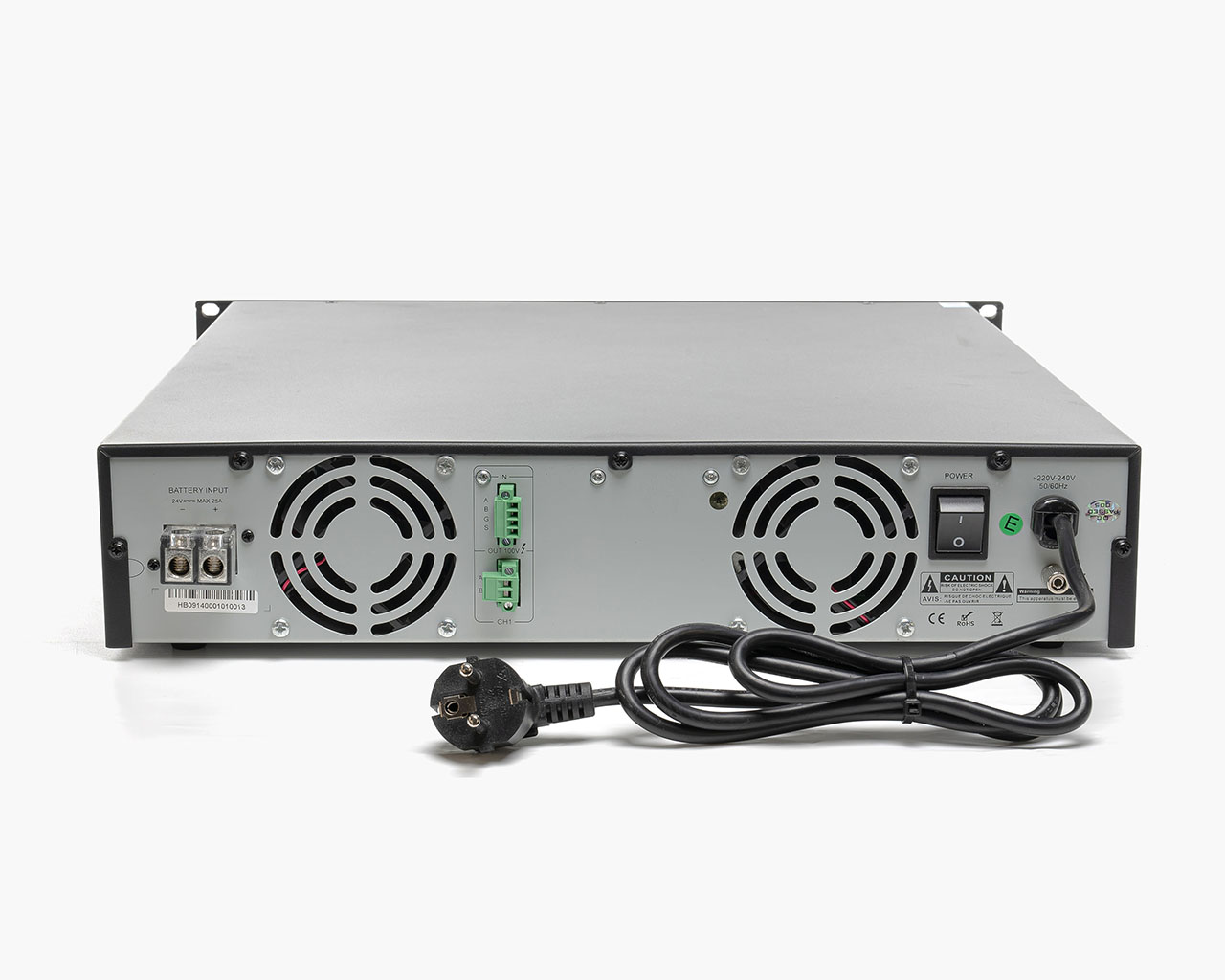 - Може застосовуватися як основний або резервний підсилювач у цифровій системі звукового мовлення EVAC.